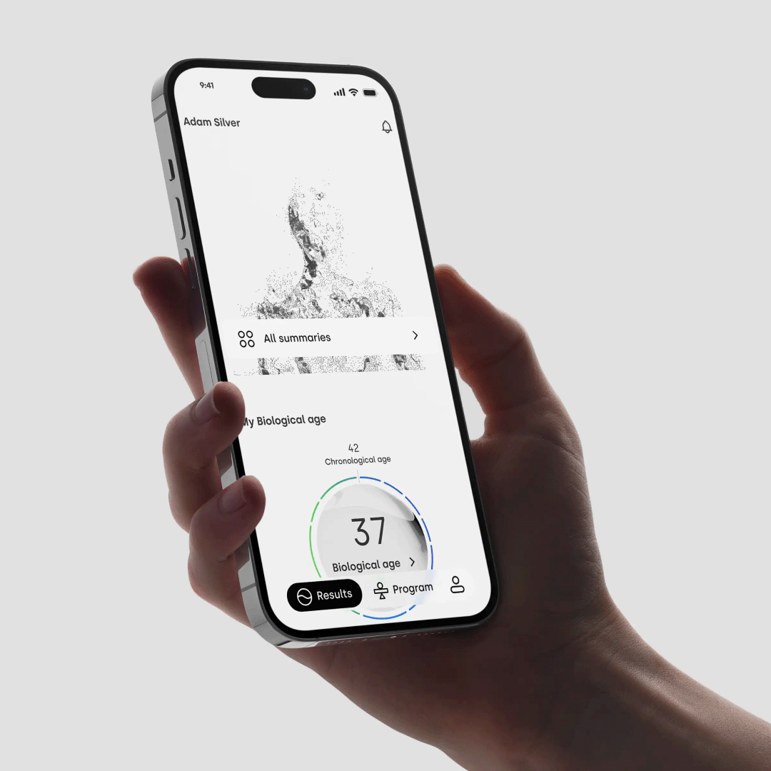 The project began with an onboarding flow to simplify test kit ordering and tracking. Phase two focused on visualizing detailed results from saliva and stool samples, offering deep insights into brain, heart, telomeres, microbiome, and more.