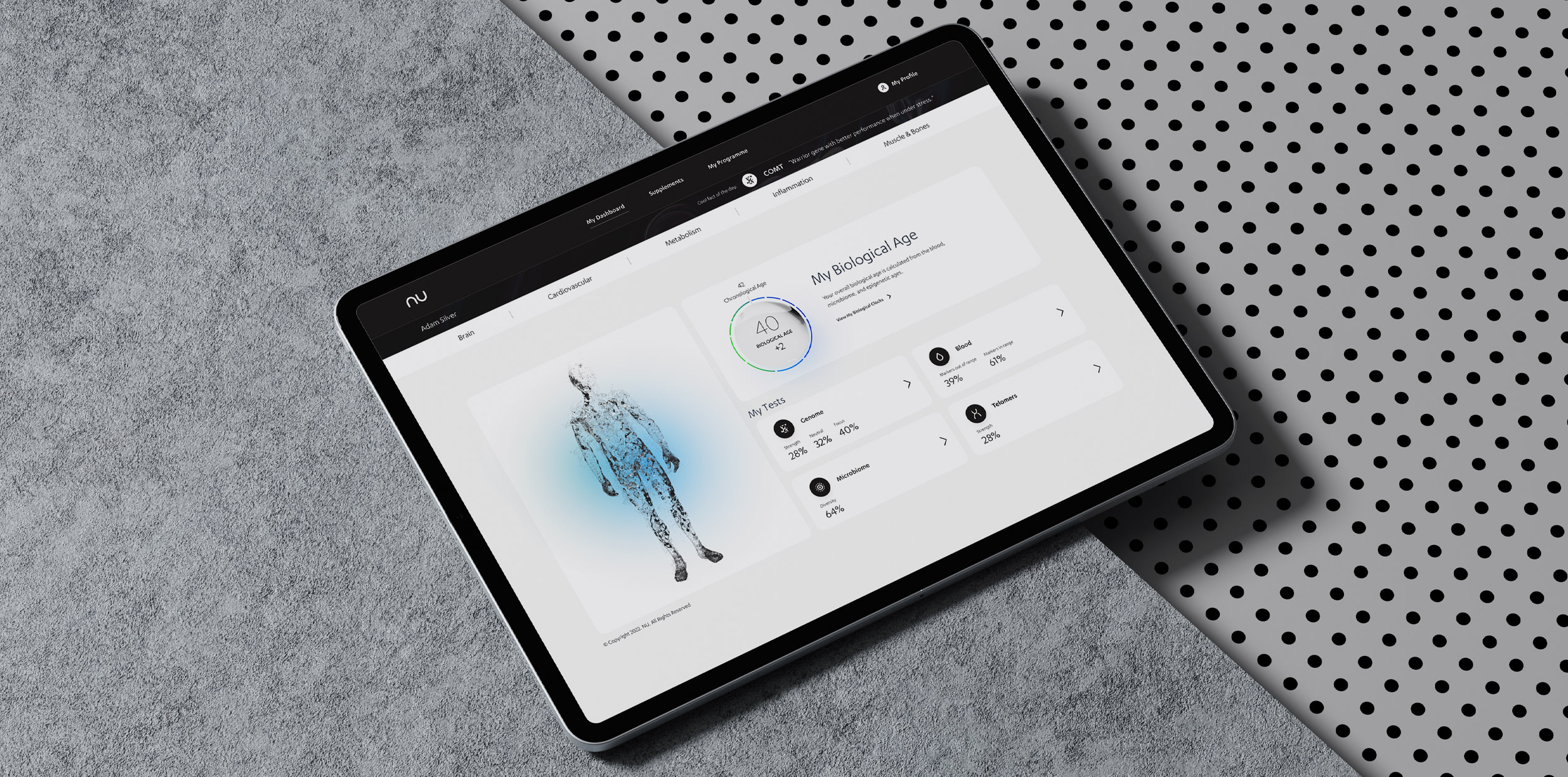 I led the complete platform design for The NU across two major phases, the pre-test journey and the post-analysis dashboard. Worked closely with: